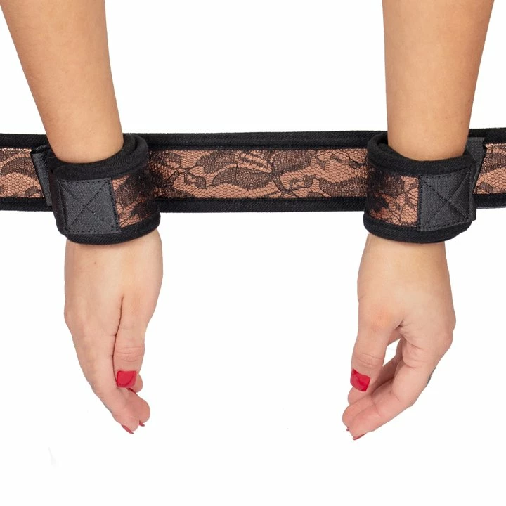 Enjoy restraint play in a range of creative positions with the Bondara Amber Lace Luxury Wrist and Ankle Restraint Bar.