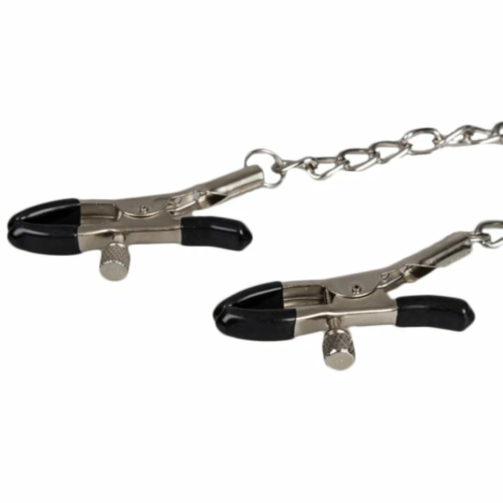 Combine your fetish look with bondage play with the Bondara Chain Harness with Nipple and Vagina Clamps. This chained harness features four crocodile clamps for your nipples and labia to deliver a sharp pinch on some of your most sensitive spots. Adjust each clamp for the perfect level of intensity and various levels of pinch across your body.Β