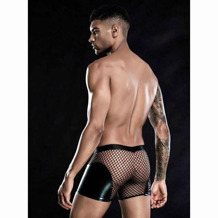 There’s no mistaking your kinky intentions in the Men’s Wet Look Fishnet Boxers from Bondara Edge.