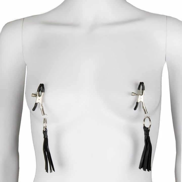 Stimulate and decorate your excited nipples with these Bondara Gripping Tassel Nipple Clamps. Begin by clamping the rubber tips to the nipples and adjust the pressure to find the fine line between pleasure and pain. The clamps are accessorized by flowing black tassels that will instantly boost the appearance of your aroused nipples. Elegant yet excruciating, these gripping nipple clamps are perfect for foreplay, BDSM fun or enhancing your role play scenarios.Β Β