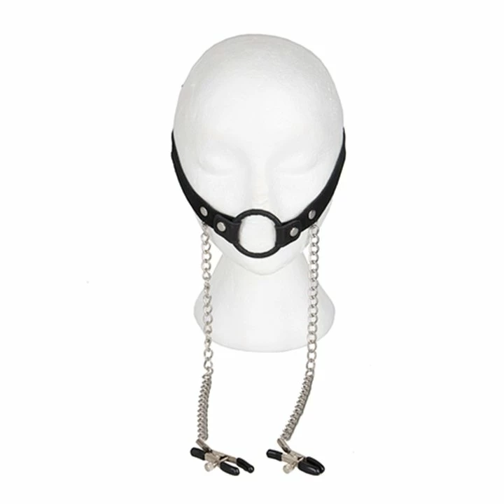 Adjust the leather straps for the best fit as you secure the buckle fastening in place. Once on, the central O-ring restricts the wearerβs speech to leave them drooling, dribbling and their mouth wide open. For a pinch more excitement, fix the nipple clamps in place and adjust the screw for the perfect level of intensity.