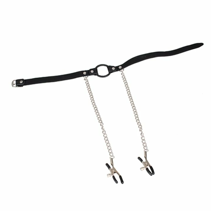 Clamp down on your playmateβs bad behaviour with the Bondage Leather O-Ring Mouth Gag with Nipple Clamps. This two-in-one accessory combines restraint with nipple play for titillating results.Β