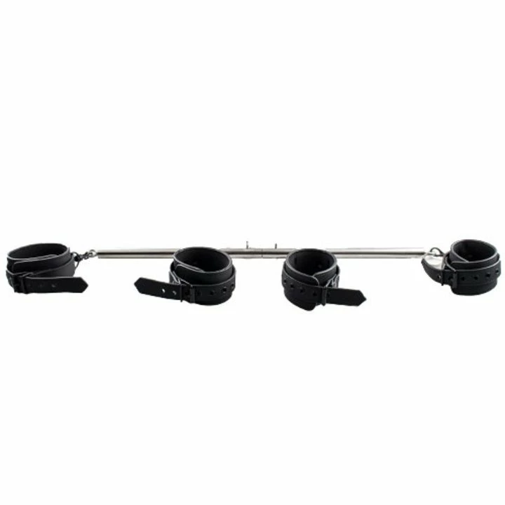 A brutal bondage restraint, the Bondara Luxe Stainless Steel Expandable Spreader Bar with Four Cuffs binds your ankles and wrists to one place. Made from stainless steel, thereβs no chance of this bar weakening as you indulge your erotic desires, so you can continue playing for as long as you like. Securely buckle the cuffs and let the matte black, PU leather look incredible against your skin.Β