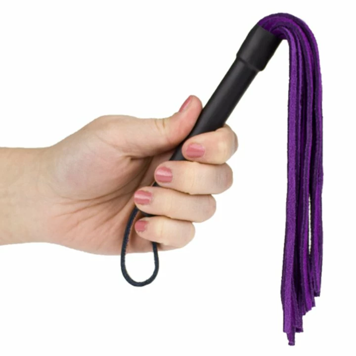This popular Dare mini flogger whip is flying out of the door! They are the ideal toy for sexy bondage role play. Blindfold your partner, restrain them with a pair of our wrist cuffs and provide them with a fabulous whipping experience. This great mini flogger whip measures 14 inches in length, includes a comfy PVC handle for added grip and features over 30 soft evenly flowing suede tails for delightful whipping. Perfect for beginners and erotic bondage play.