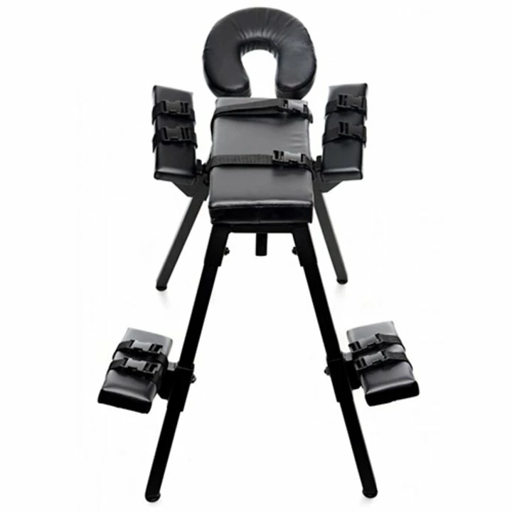 Made from sturdy steel, this heavy-duty bench will ensure your sub is completely helpless as the restraints are fastened around their body. Padding for the body, legs, arms and head ensure comfortable yet effective play; perfect for long, distraction-free sessions. The U-shaped headrest wonโt muffle their moans and keeps their head faced downwards; while theyโre unable to see you, itโs up to you what happens next.ย