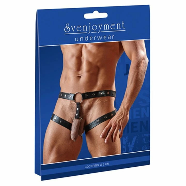Be left exposed with the Svenjoyment Wet Look Cock Ring Harness. Perfect for fetish play, the wet look fabric creates an erotic look for instantly set the mood.ย