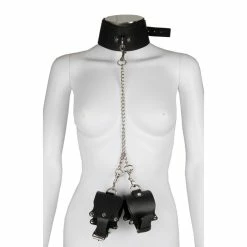 Look and play the part as you attach the wrist cuffs and force your hands to remain by your side. For versatile restraint, the trigger hook clasps let you easily detach the cuffs from the faux leather harness.