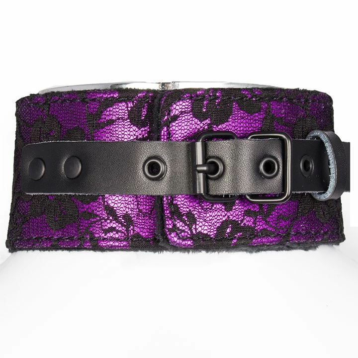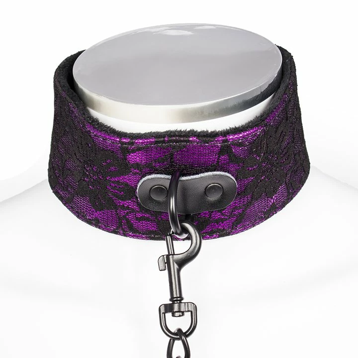 Boost your role play and puppy play fetishes with this stylish Bondara Soft Purple Floral Collar with Leash. The collar and wrist strap feature intricate purple and black floral designs on the outside while sturdy black faux leather straps and buckles help you to find the perfect fit and pressure. Soft, black inner lining strokes the neck and decorates your playmate as you prepare for humiliating BDSM sessions. A detachable, black chain allows you to parade your playful pup and discipline them with a swift tug if they stray too far.