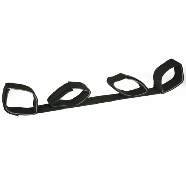 Gain full control with this wrist and ankle restraint bar which effectively immobilizes your partner and holds them comfortably in either a sitting or kneeling forward position. The ankle cuffs are situated at each end of the restraint bar whilst the wrist cuffs are conveniently placed in the middle. All four cuffs are securely fastened by Velcro straps and are soft and padded ensuring maximum comfort and a perfect fit every time. This is a huge best-seller and recommended for any bedroom or dungeon.