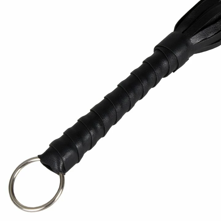 This Bondara To The Point Black Mini Flogger can quickly enhance any bondage role play. Assert your Dominance as you stand above your quivering sub ready to punish their bad behaviour. Run the tips of the tails over your subβs skin teasing their most sensitive bits, slowly building arousal. Then, the mini flogger is perfect for delivering sharp flicks from the multitude of tails and the short distance between you and your sub helps with accuracy.Β A menacing O-ring at the base adds a dark, BDSM appearance and could also be used when things get ultra-kinky. Ideal for travelling Dominants who want to keep a discreet profile.Β