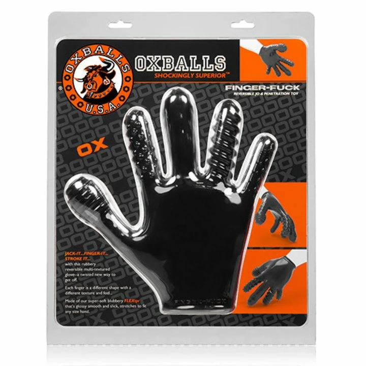 Turn your hand into an orgasm superhero with the Oxballs Finger Fuck Glove. For one-fingered fun or fisting fanatics, this glove has a different shape and texture on every finger. Stimulate with ridges or drive them wild with nodules as the glove brings an entirely new sensation to your play.