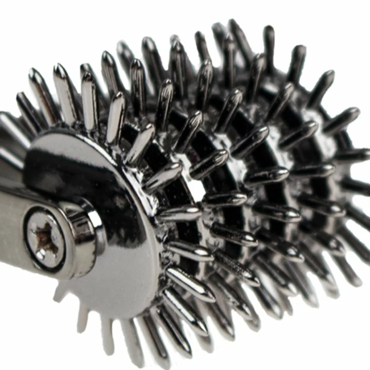 Stroke or sting your partnerβs skin with the Torment by Bondara Gunmetal Wartenberg Pinwheel. Make them succumb to sensory play as you roll five rows of pins across their body β be that their neck, inner thigh or feet, youβll love discovering which place they like the most. Easily increase the pressure to make the sensations more intense. For more brutal stimulation, drag the pinwheel sideways to inflict a scratch.