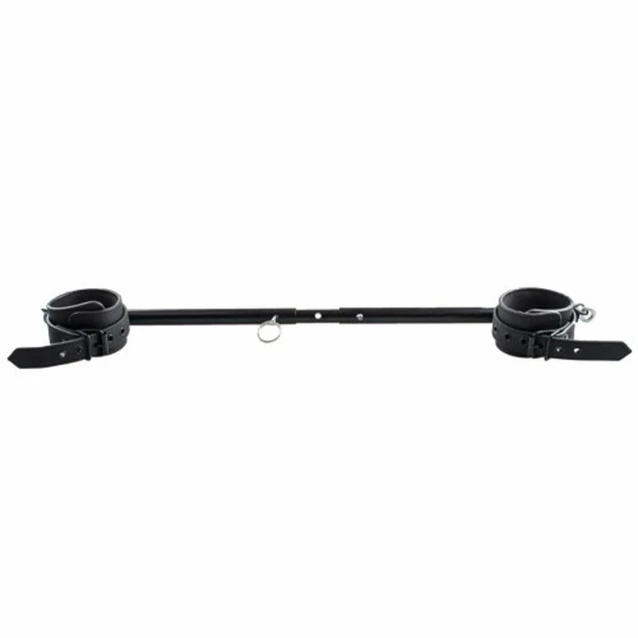 Buckle in for a wild ride with the Bondara Stainless Steel Expandable Spreader Bar with Cuffs. This risquรฉ restraint will have your submissive partner bound to the bar by their ankles, unable to move and under your control. Made from PU leather, the ultra-smooth, matte black cuffs will look incredible against your partnerโs skin.ย