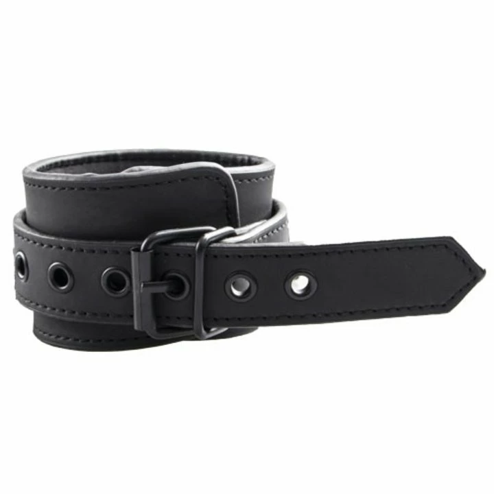 โข Matte black, PU cuffs feature a buckle design for a secure fit